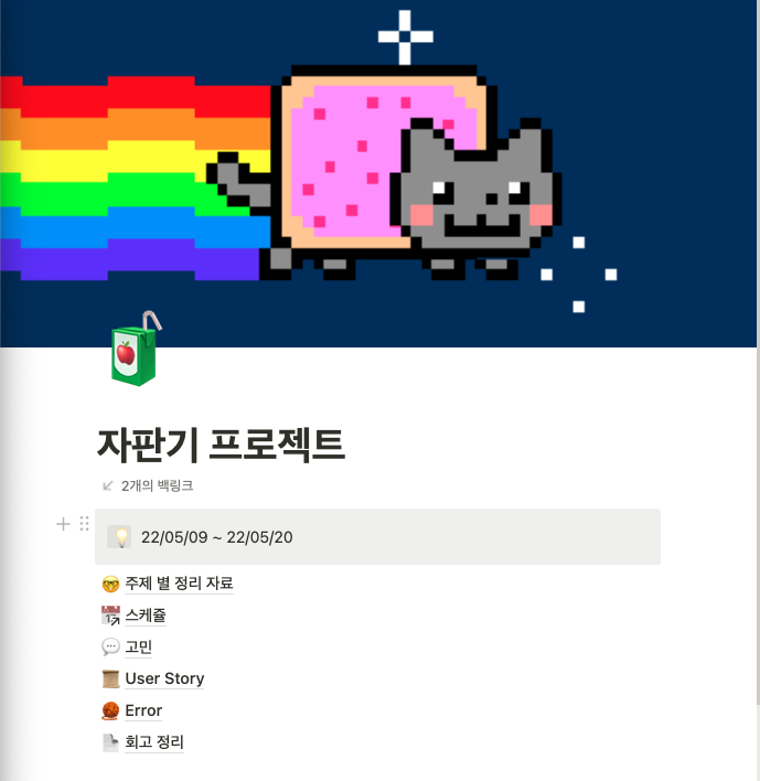 그래서 이번에는 아예 효율적으로 기록을 하기 위해 프로젝트 전용 노션 페이지를 하나 파서 항목을 나눠 조금 정성을 들여 정리를 해봤다.