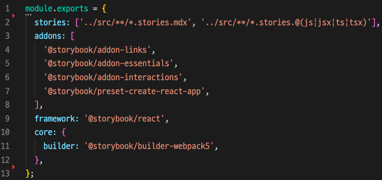 2. '.storybook' ํด๋ ๋ด์ main.js ํ์ผ์์ ์ค์ ํด์ค๋ค.