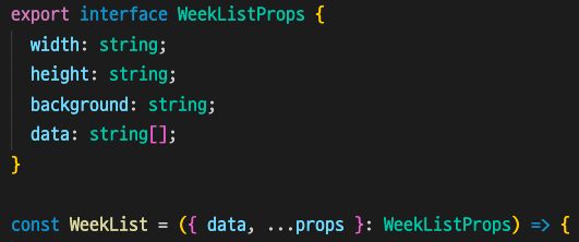 ์๋ฅผ ๋ค์ด ์์ ๊ฐ์ props ์์ฑ์ ๊ฐ์ง๋ WeekList๋ผ๋ ์ปดํฌ๋ํธ๊ฐ ์๋ค๊ณ ํ ๋!