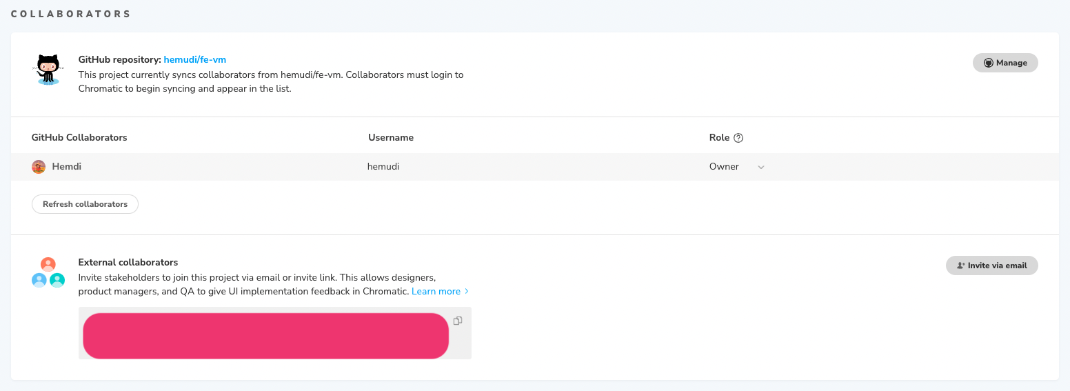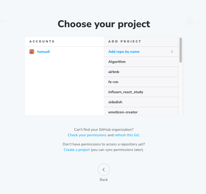 ๋จผ์ Chromatic ์ฌ์ดํธ์ ์ ์ํด Github ๊ณ์ ์ผ๋ก ๊ฐ์ ์ ํด์ฃผ์!