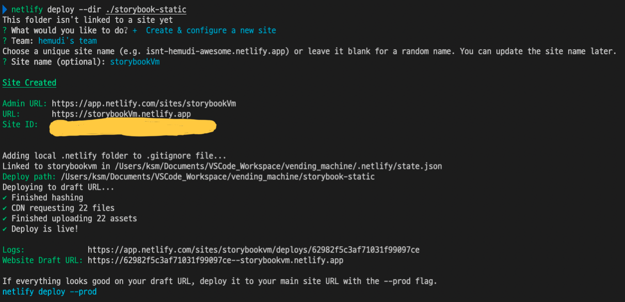 (+) ์ดํ Netlify๋ฅผ product ๋ก ๋ฐฐํฌํ๊ณ ์ถ์ผ๋ฉด ์์ ๋ก๊ทธ์ ์ ํ์๋ฏ์ด netlify deploy --prod ๋ช ๋ น์ด๋ก ๋ค์ ๋ฐฐํฌํ๋ฉด ๋๋ค!